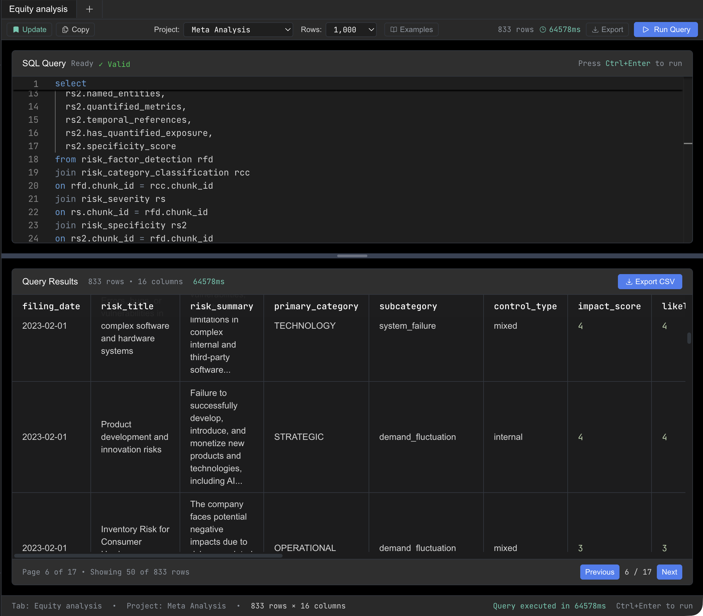 WHERE date > '2025-01-01'; SELECT sentiment_score, key_topics, risk_flags